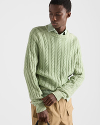 This fine wool and cashmere sweater with a cable-knit motif stands out for its attention to detail. Comfort and craftsmanship give shape to a sleek, timeless garment. - Product code: UMF267_1881_F0194_S_OOO - Cable knit - Regular fit - Ribbed knit crew-neck - Semi-raglan shoulder - Ribbed knit cuffs and hem - Triangle logo - Imported - The model is 190 cm tall and wears a size 48 Height: 62cm MATERIALS Main material: 30% Cashmere 70% Virgin Wool