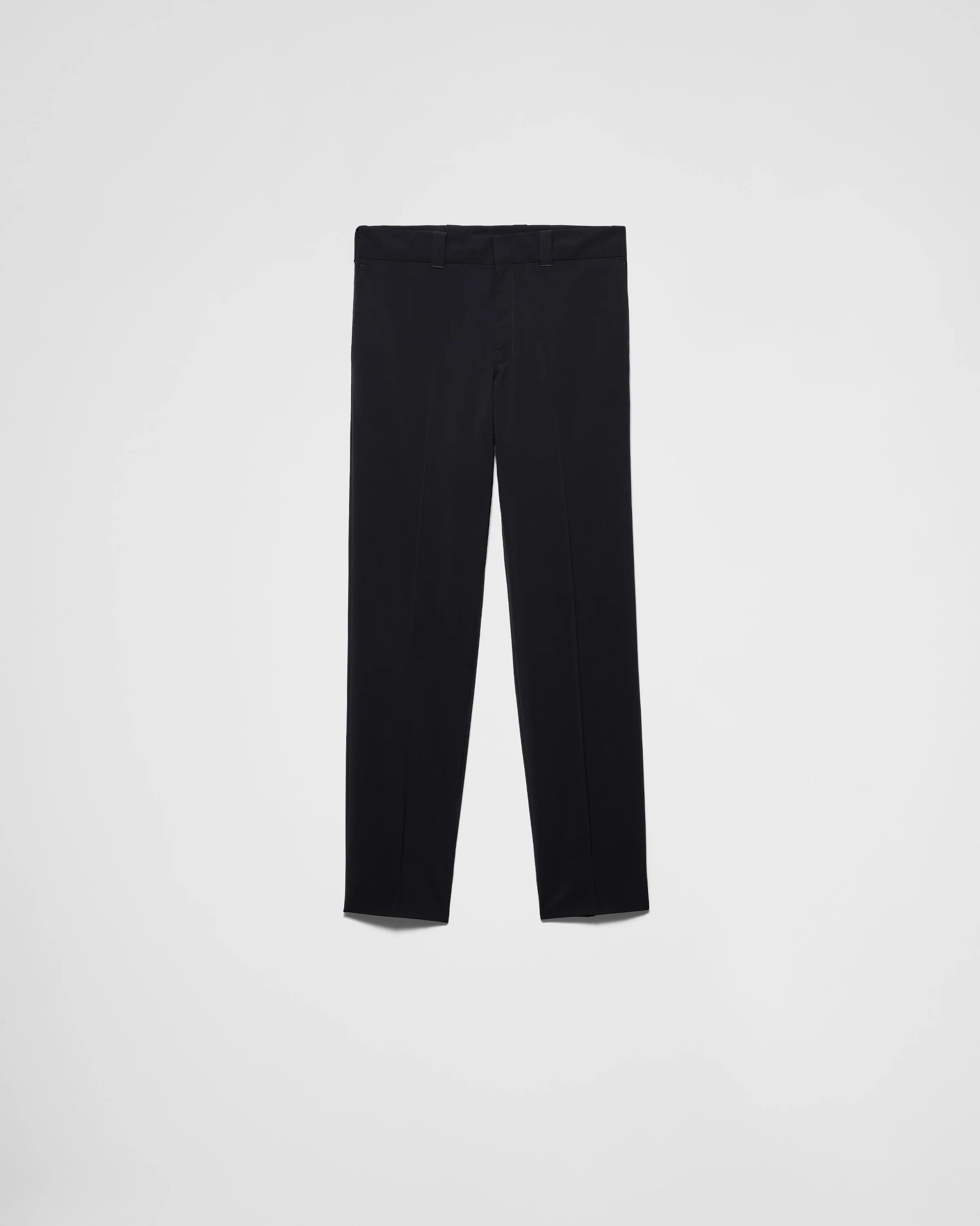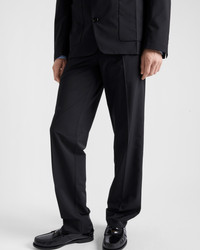 Defined by a refined, sleek cut, these wool blend pants are decorated with the emblematic tonal triangle logo. The extra-slim fit adds a touch of modern elegance. - Product code: SPH257_13L5_F0002_S_231 - Extra-slim fit - Drawstring waistband - Hidden zipper fly with hook - Angled front slash pockets - Back welt pockets with button - Hem width: 20 cm - Fabric triangle logo on the back - Imported - The model is 188 cm tall and wears a size 48 Height: 110cm MATERIALS Main material: 36% polyamide 64% virgin wool