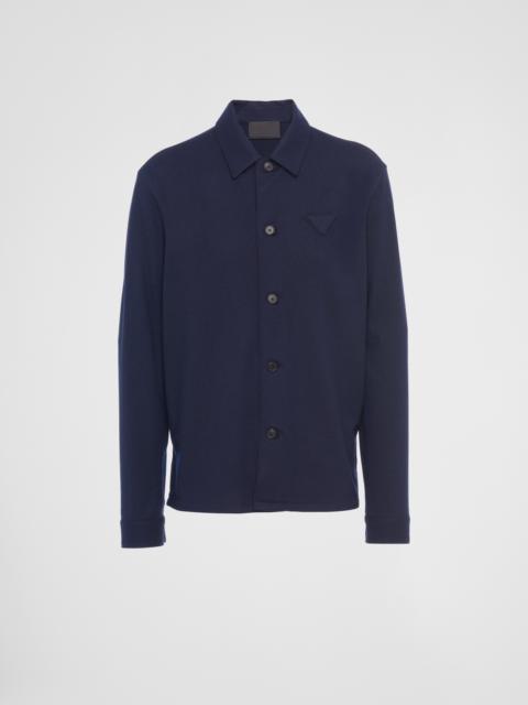 Sleek and refined, this shirt is characterized by its original horn button closure that underlines the hybrid soul of the garment that is decorated with the triangle logo reinterpreted as a fabric patch. - Product code: SC551_1Y5S_F0SVF_S_212 - Straight fit - Classic collar - Straight hem - Cuff with horn button - Horn button front closure - Fabric triangle logo - Top-stitching - Imported - The model is 186 cm tall and wears a size 48 Height: 68cm MATERIALS Main material: 50% cashmere 50% virgin wool