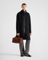 This wool blouson features a sophisticated and modern shape with practical elements such as the detachable padding, showcasing the versatility of the design. - Product code: SGC769_15UZ_F0002_S_OOO - Regular fit - Shirt collar - Straight sleeves - Button closure - Patch pockets with flap and button - Button-fastened cuffs - Wide shoulders - Straight hem - Unlined - Double-weave fabric - With removable padding - Fabric triangle logo on the back - Imported - The model is 190 cm tall and wears a size 48 Height: 68cm MATERIALS Main material: 100% cashmere