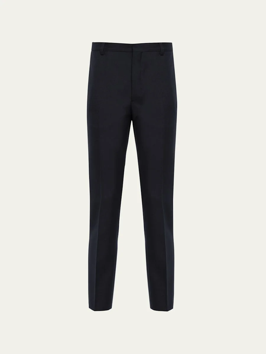 Prada blended wool pants exude classic appeal with a sartorial look Constructed waistband Front slash pockets; back welt pockets Skinny fit Full length Hook and eye, zip closure Wool/cashmere Made in Italy Model is 6'1"/185cm. Online Inquiries: BGS21_N8L0B| Store Inquiries: #4157779