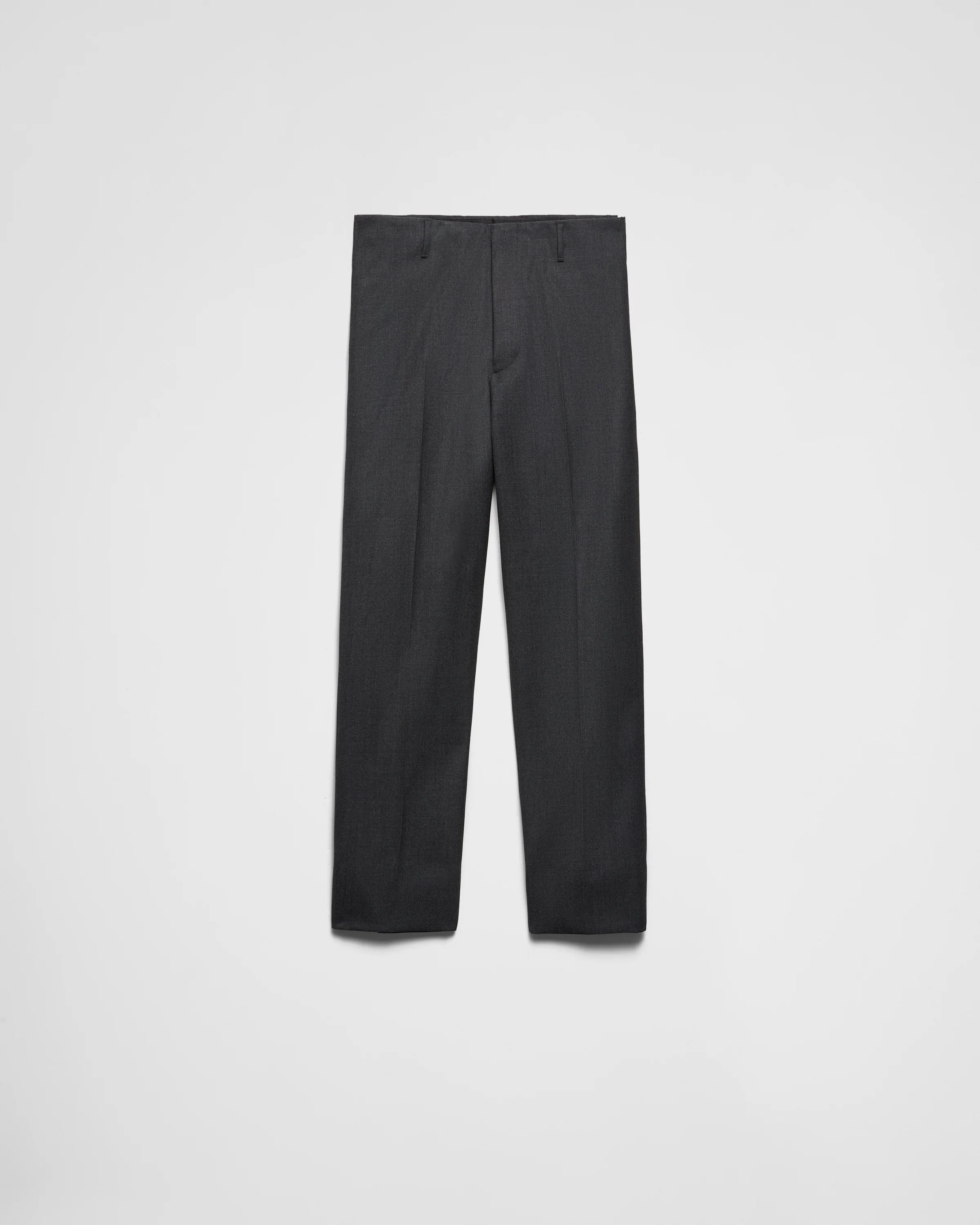 A classic tailored cut characterizes these Prada wool pants blending formal and informal elements. - Product code: UP0283_15JX_F0308_S_AAO - Slim fit - Hidden zipper fly with hook - Angled front slash pockets - Back welt pockets with button - Imported - The model is 189 cm tall and wears a size 48 Height: 97cm MATERIALS Main material: 100% virgin wool