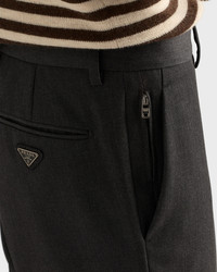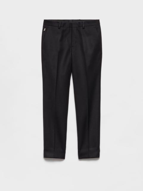 A hybrid style blending sartorial elegance and casual sophistication characterizes these slim-fit wool pants. The enameled metal triangle logo adds its iconic signature touch to the garment. - Product code: UP0375_15JX_F0308_S_OOO - Slim fit - Constructed waistband - Concealed button fly with hook - Angled front slash pockets with small zipper pocket - Double welt pockets on the back with button - Hem width: 18 cm - Enameled metal triangle logo on the back - Imported - The model is 189 cm tall and wears a size 48 Height: 102cm MATERIALS Main material: 100% virgin wool