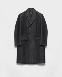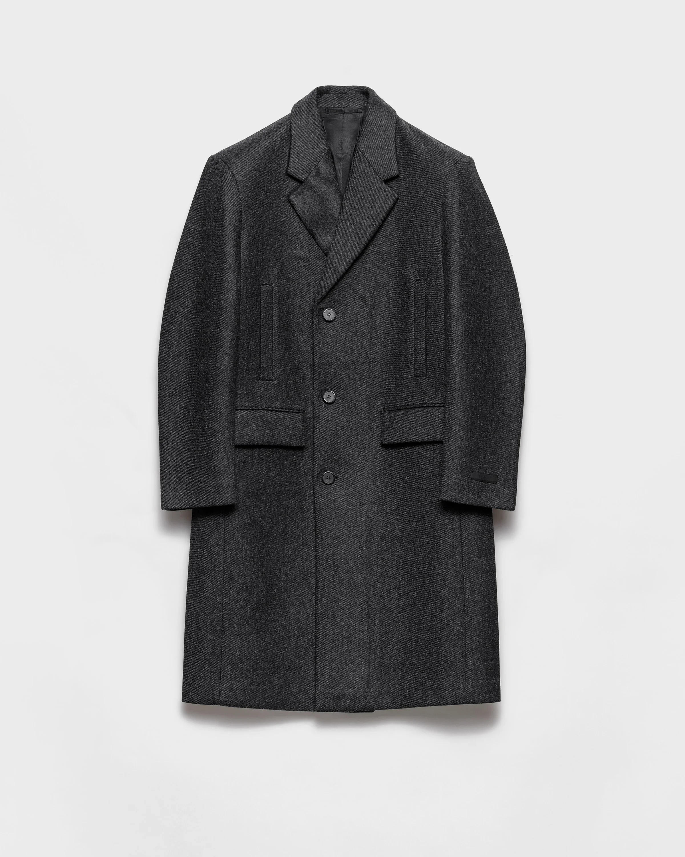 Sartorial precision is redefined with new proportions and original details, an expression of contemporary and unconventional elegance. This wool coat with a classic silhouette and straight cut is enriched by creases created on the finished garment that give it an unexpected, casual allure. - Product code: UC546M_17ZU_F0480_S_OOO - Classic fit - Notch lapel - Center vent - Three-button closure - Plain cuffs - Flapped welt pockets - Lined garment - Knit triangle logo on the back - The creases are an intrinsic characteristic due to pressing of the finished garment. - Imported - The model is 188 cm tall and wears a size 48 Height: 110cm MATERIALS Main material: 100% virgin wool