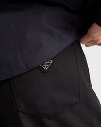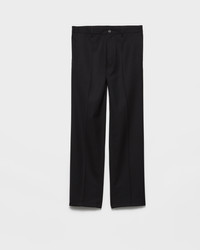 These pants with sleek details, a classic cut and casual allure are a key piece in a wardrobe with contemporary style. The garment is made of wool with a slightly creased effect, a distinctive detail of Prada collections that adds dimension and uniqueness to the style. - Product code: UP0371_155E_F0002_S_OOO - Classic fit - Zipper fly with button - Angled front slash pockets - Back patch pockets - Hem width: 22 cm - Enameled metal triangle logo on the back - The creases are an intrinsic feature because the garment is pressed after assembly - Imported - The model is 189 cm tall and wears a size 48 Height: 108cm MATERIALS Main material: 100% virgin wool