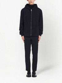 zip-front wool hoodie dark blue wool triangle logo classic hood front zip fastening long sleeves two side slit pockets elasticated cuffs straight hem Composition Wool 100%