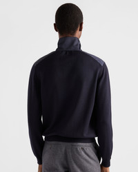 Precision and functionality meet. This superfine wool cardigan combines a clean construction, zipper closure, and Re-Nylon front insert. The result is casual elegance. - Product code: UMG422_172V_F0008_S_OOO - Plain knit - Regular fit - Stand-up collar - Regular shoulder - Re-Nylon insert - Ribbed knit cuffs and hem - Triangle logo - Front zipper closure - Angled pockets - Imported - The model is 189 cm tall and wears a size 48 Height: 65cm MATERIALS Main material: 100% virgin wool