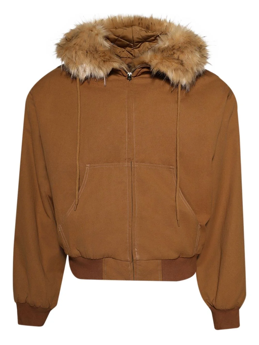 fur-trimmed hooded jacket Highlights - Brown - Faux fur hood trim - Zip front fastening - Pouch pockets - Ribbed hem - Long sleeves Made in United States Composition Cotton 100% Washing instructions Read Manufacturer Guidelines