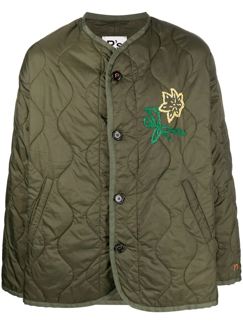 embroidered quilted jacket military green quilted finish embroidered design round neck front button fastening long sleeves straight hem Made in Italy Composition Polyamide 100% SIZE & FIT Model measurements Height 6 ft 2 in(1.87 m) Bust/Chest 38.18 in(97 cm) Hips 36.61 in(93 cm) Waist 29.13 in(74 cm) FittingInformation This piece fits true to size. We recommend you get your regular size Cut for a loose fit Made with a mid-weight non-stretch fabric Washing instructions Hand Wash