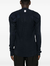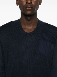 fine-knit sweater Highlights - Navy blue - Fine knit - Crew neck - Drop shoulder - Long sleeves - Front flap pocket - Ribbed cuffs and hem - When buying this unisex item, keep in mind that it is graded in standard men's sizing. Made in Italy Composition Acrylic 100%, Cotton 65%, Polyester 35% SIZE & FIT Model measurements Height 5 ft 10 in(1.77 m) Bust/Chest 33.07 in(84 cm) Hips 37 in(94 cm) Waist 24.8 in(63 cm) FittingInformation This unisex piece is designed for a relaxed fit whether you usually select women's or men's sizes Made with a midweight knit, this piece offers some stretch