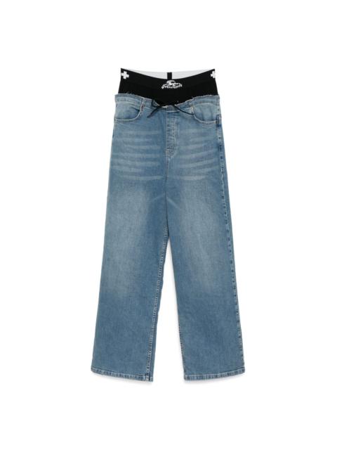 waistband jeans Highlights - Indigo blue - Elasticated waistband - Drawstring waist - Two side slash pockets - Two rear patch pockets Imported Composition Cotton 95%, Elastane 5% SIZE & FIT Model measurements Height 6 ft 2 in(1.87 m) Bust/Chest 33.07 in(84 cm) Hips 35.43 in(90 cm) Waist 26.77 in(68 cm) FittingInformation Designed with a straight leg, these jeans allow for an unrestricted and comfortable fit over the leg Adjust this piece’s waistband to your preference using the drawstring Sturdy and hard-wearing, this denim piece offers no stretch Washing instructions Machine Wash