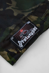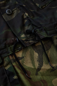 The Prototypes Overdyed Camo Parka is a lightweight upcycled and overdyed twill jacket featuring raw edges throughout, bungee-style drawstring and throat guard at the hood, dropped shoulders, pen slots at the chest, flap pockets, vented side seams, graphic patch at the sleeve, a logo patch at the cuff, and logo flag at the back collar.Please note coloration and finishings may vary. DETAILS - Size M is S-M, XL is L-XL - Upcycled + overdyed twill - Camouflage pattern - Raw edges throughout - Bungee-style drawstring + guard at hood - Concealed zip closure - Button placket - Pen slots at chest - Bungee-style drawstring at waist - Flap pockets - Vented side seams - Dropped shoulders - Graphic patch at sleeve - Logo patch at cuff - Adjustable tab at cuffs - Logo flag at back collar - Unlined Material: 100% Cotton Made in Italy Product codes: - SKU: ESSX/PRO/SS25/PT07OW03USBCA/Green/L-XL - UPC: 1403558041287