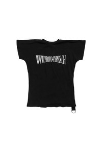 The Prototypes Website Tee in jersey with a slim-fit, crewneck, contrast logo graphic printed at the front, cropped hem with an integrated strap with keyring, and signature logo flag at back collar. DETAILS *Size M is S/M, XL is L/XL - Upcycled jersey fabrication - Crewneck - Logo graphic printed at front - Cropped hem - Integrated strap with keyring at hem - Logo flag at back collar - Each item is unique + may vary Material: Upcycled Cotton Made in Italy Product codes: - SKU: ESSX/PRO/SS25/PT07TO04USB/Black/L-XL - UPC: 1000000015362