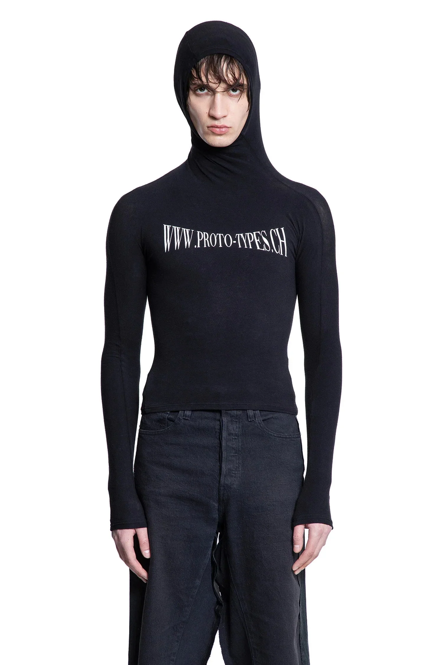 DESCRIPTION - Black - Cotton cheesecloth - Seamless construction - Twisted hood - Front website logo print - Cropped hem - Boxy fit - Fitted DETAILS - Made in: United States - Composition: 100% Cotton - Model code: PT07TO02USB - Item ID: 9540169597270 SIZE & FIT Model wears size L/XL Model Height 186 cm Chest 89 cm Waist 72 cm Hips 93 cm