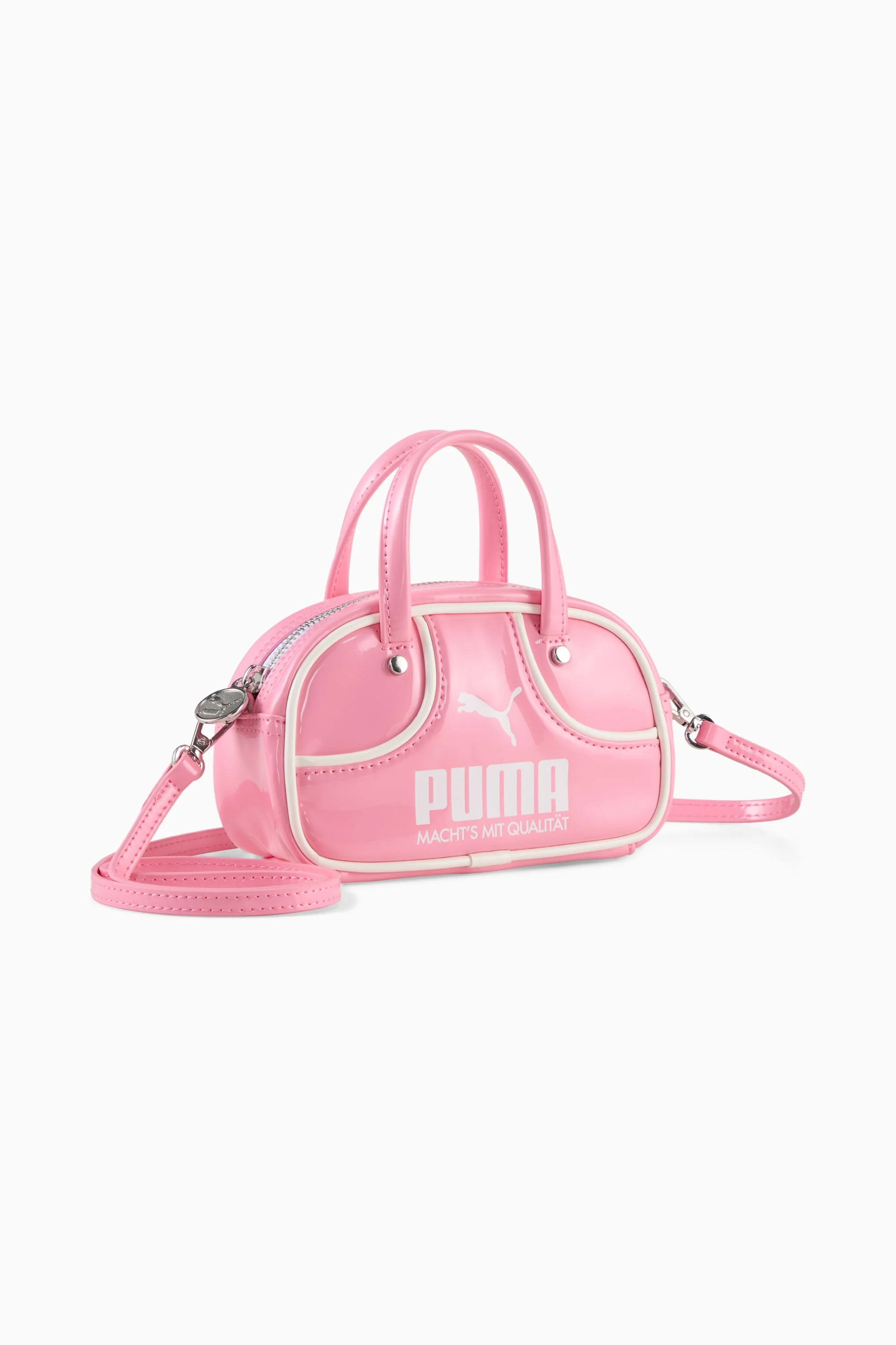 PRODUCT STORY We delved into our archives to bring back this icon of PUMA's sporting history: the 1976 Grip Bag. First seen accompanying PUMA athletes to the tracks, the fields, and the courts, the Grip Bag went on to transcend its athletic roots and become a streetwear and fashion staple. Today, we're reissuing the classic with its original shape and timeless aesthetic. Defined by two top carry handles, contrast piping, and rounded front panels, this all-time classic continues to blend functionality with sport and style. DETAILS - Style: 091824_06 - Color: Posie Pink - Zipped main compartment - Internal credit card slip-in pocket - Flat carry handles with padding - Detachable shoulder strap - Volume: 1L - Dimensions: H10cm x W17cm x D7cm MATERIAL INFORMATION - Lining: 100% polyester