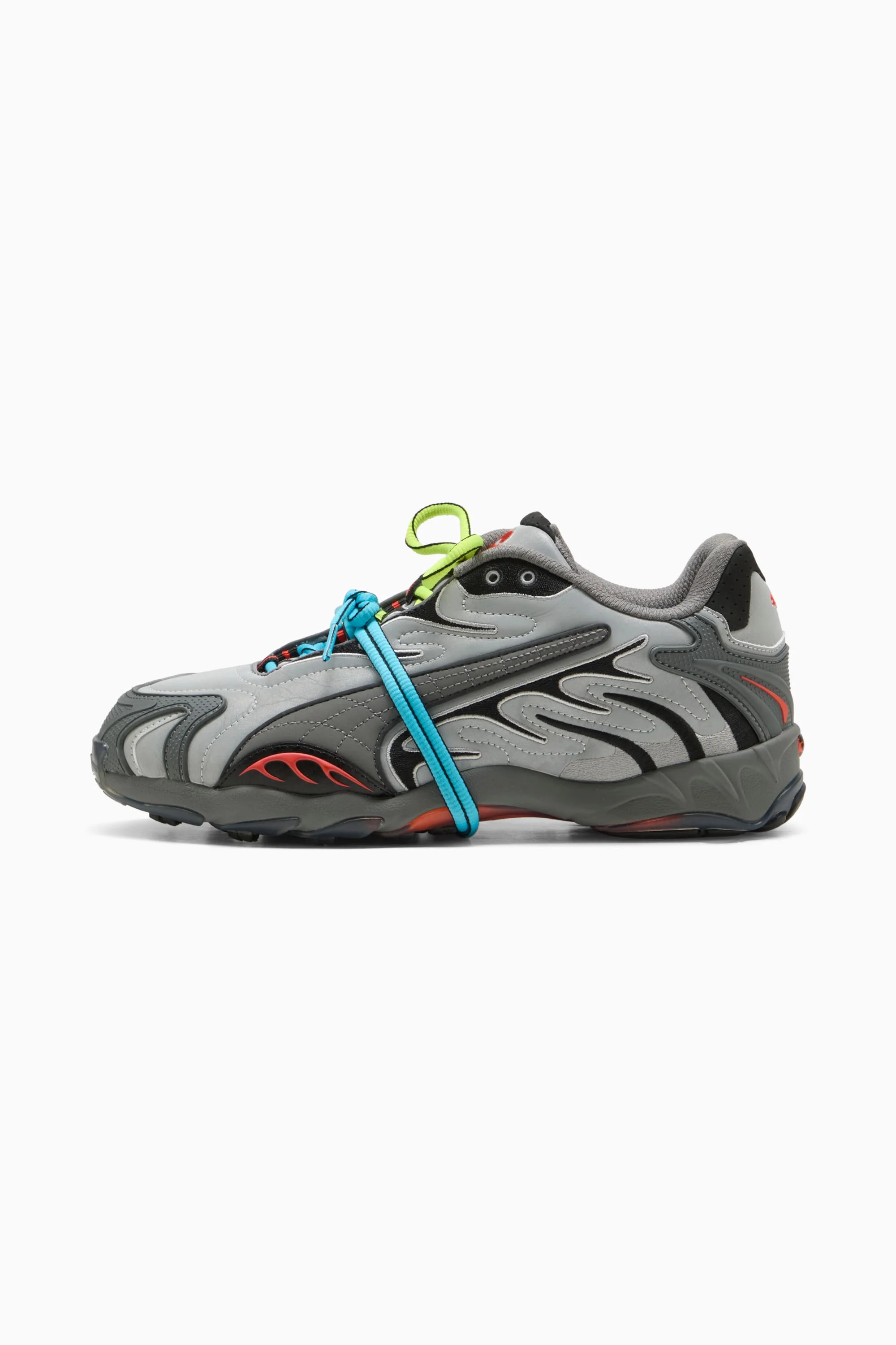 PRODUCT STORY A$AP Rocky brings his signature aesthetic to a brand new capsule with PUMA, made for the concrete jungle. The collection fuses classic streetwear design with striking color pops, technical textures, and touches of motorsport DNA. Two of Rocky’s favored PUMA sneakers – Inhale and Mostro OG – return alongside a bold new style and new personal Flacko favorite: Mostro Gabbia, built with a removable cage. Gritty, bold, and unapologetically A$AP, this drop is geared to stand out. DETAILS - Style: 405383_01 - Color: Team Silver-Flat Medium Gray - Fit: Regular - Toe type: Rounded - Fastener: Laces - Heel Type: Flat - Rubber moulded toecap and back heel piece with raised embossed details - Embossed TPU flame piece on the side - 4 different lace colour options - Translucent gradient outsole - A$AP ROCKY x PUMA co-branding details MATERIAL INFORMATION - Midsole: 100% Synthetic - Sockliner: 100% Textile - Outsole: 100% Rubber - Upper: 83.44% Synthetic, 16.56% Textile - Lining: 100% Textile
