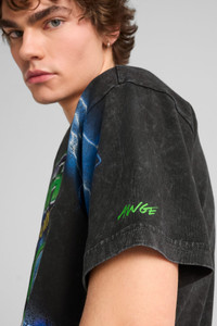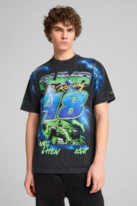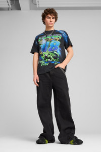 PRODUCT STORY This tee gets the A$AP ROCKY x PUMA treatment, with a loose fit, a stone wash treatment, and large racing-inspired graphics printed over the seams. DETAILS - Style: 632010_01 - Color: PUMA Black - 70% cotton - 30% recycled cotton - Loose fit - Ribbed crew neck - Regular fit - A$AP ROCKY x PUMA branding details MATERIAL INFORMATION - SHELL: 100% cotton - COLLAR: 94% cotton, 6% elastane