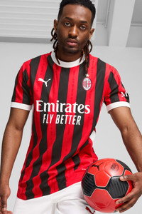 PRODUCT STORY Where Red meets Black, soccer meets family. Introducing the 24/25 AC Milan Home Kit. With graphics inspired by the human genome, the latest evolution of iconic Rossonero stripes celebrates how the love for AC Milan has been passed on through generations, from Milan to the world, since 1899 and forever. FEATURES & BENEFITS - ULTRAWEAVE: Ultra-light, engineered fabric with a structured, 4-way stretch that reduces weight and friction. Built for athletes looking to increase speed and strength - dryCELL: Performance technology designed to wick moisture from the body and keep you free of sweat during exercise - Made with 100% recycled material excluding trims and decorations DETAILS - Style: 774949_01 - Color: For All Time Red-PUMA Black - Performance Fit - 78 gsm, Dobby - Crew neck - Short sleeves - Authentic jersey: As worn by the players - Official team branding MATERIAL INFORMATION - INSERTS: 100% polyester - SHELL: 100% polyester - RIB: 100% polyester