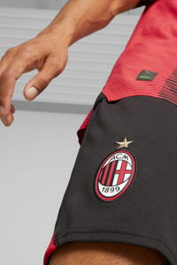 PRODUCT STORY Hit the pitch looking and playing like the stars on AC Milan in these soccer shorts. They’re made from sweat-wicking material to keep you cool in the tensest moments of the game and are finished with the team’s famous crest on the leg. FEATURES & BENEFITS - Recycled content: Made with 100% recycled material excluding trims and decorations as a step toward a better future - dryCELL: Performance technology designed to wick moisture from the body and keep you free of sweat during exercise DETAILS - Style: 770413_04 - Color: PUMA Black-For All Time Red - Regular fit - Above knee length - Elastic waistband - Official team crest MATERIAL INFORMATION - Shell: 100% polyester - Rib: 97% polyester, 3% elastane