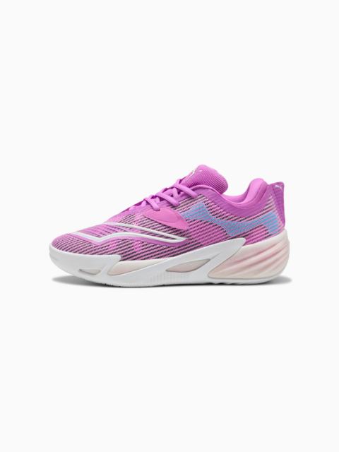PRODUCT STORY This is the All-Pro NITRO™ 2 Shammgod – redesigned for the PUMA legend and NBA coach. Inspired by his creativity on the court and iconic crossover, this version of the cutting-edge performance basketball shoe is adorned with "SHADOW SHAKER" – a tribute to Shammgod's elusive, unpredictable playing style and his story of playing late at night under the Harlem streetlights. The All-Pro NITRO™ 2 is built with the latest PUMA Hoops technology: NITRO™ SQD foam technology delivers exceptional support and responsiveness for multi-directional movements, while the all-new PWR Print upper provides stability in a lightweight design. FEATURES & BENEFITS - NITRO™ SQD FOAM: A soft inner layer of NITROFOAM™ provides cushioning and responsiveness for every step while a firm outer layer of NITROFOAM™ delivers targeted lateral stability for all multi-directional movements. - FIT: PWR Print upper creates stability in a thin, lightweight upper package. - STABILITY: Cord lock-down lacing system in the forefoot for lateral stability which extends down to the midsole for targeted support. - The upper of the shoes is made with at least 20% recycled materials DETAILS - Style: 312308_01 - Color: PUMA White-PUMA Black - Regular fit - Rounded toe - Fastener: Laces - Upper: Breathable synthetic and mesh PWR Print upper - PUMAGRIP outsole: Durable performance rubber compound designed for all-surface traction MATERIAL INFORMATION - Midsole: 100% Synthetic - Sockliner: 100% Textile - Outsole: 100% Rubber - Upper: 68% Textile, 32% Synthetic - Lining: 100% Textile
