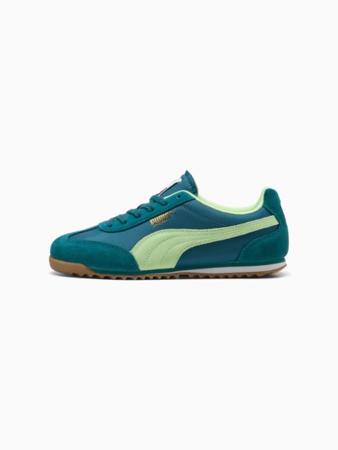 PRODUCT STORY Straight from our 1970s archive, the Arizona was a low-slung training shoe used for a variety of sports. Now it's back with its classic look and timeless appeal. This version features a nylon upper, suede overlays, and plenty of foil printed PUMA branding details. DETAILS - Style: 398682_22 - Color: Orange Glo-Poised Pink-PUMA Gold - Regular fit - Nylon upper - Suede vamp, heel and eyestay overlays - Lace closure - EVA midsole - Rubber outsole - Synthetic PUMA Formstrip - PUMA branding details MATERIAL INFORMATION - Midsole: 100% Synthetic - Sockliner: 100% Textile - Outsole: 100% Rubber - Upper: 57.35% Leather - cow, 42.65% Textile - Lining: 100% Textile