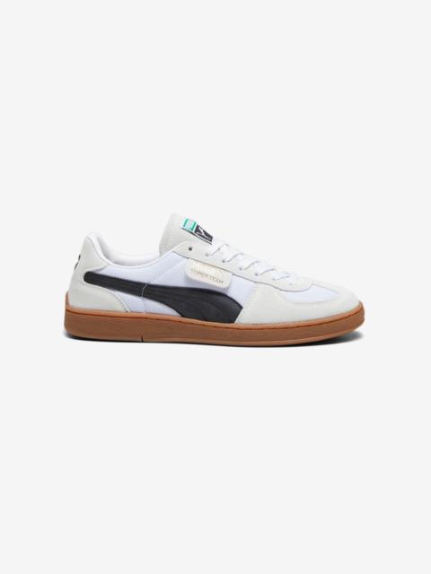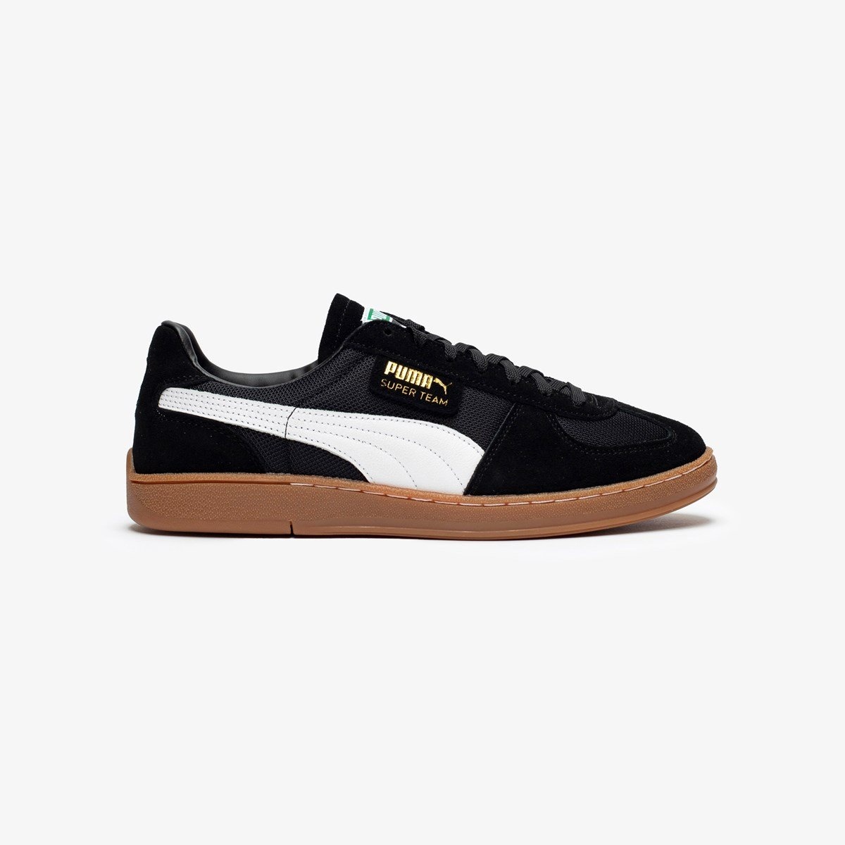 The PUMA Super Team OG first released back in 1982 and was designed for handball goalkeepers. The Super Team OG is now back in all its retro glory. It features mesh and suede on the upper, with leather PUMA formstrips on the sides and gold foiled PUMA branding. The SOFTFOAM+ sockliner paired with the IMEVA and gum rubber outsole ensure you'll stay comfortable whilst maintaing that classic look. - Puma Super Team OG Black - Mesh upper - Suede overlays - SOFTFOAM+ sockliner - IMEVA and rubber midsole - Gum rubber outsole Article no. 390424-08 Gender: UNISEX Color: Black
