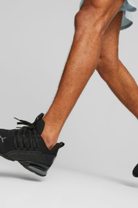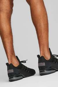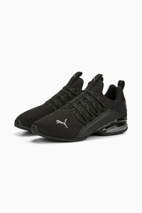 PRODUCT STORY The Axelion Refresh is a fresh new running shoe that takes the Axelion design language to the next level. The upper features a molded saddle piece for added dimension and bold, exaggerated lacing. Plus, they're packed with support and will provide long-lasting comfort. FEATURES & BENEFITS - SOFTFOAM+: Step-in comfort sockliner designed to provide soft cushioning thanks to its extra thick heel DETAILS - Style: 377911_01 - Color: PUMA Black-Cool Dark Gray - Molded saddle piece - TPU shank - EVA heel piece - PUMA Cat Logo on the toe - PUMA Wordmark on the heel MATERIAL INFORMATION - Midsole: 100% Synthetic - Sockliner: 100% Textile - Outsole: 100% Rubber - Upper: 80.24% Textile, 19.76% Synthetic - Lining: 100% Textile