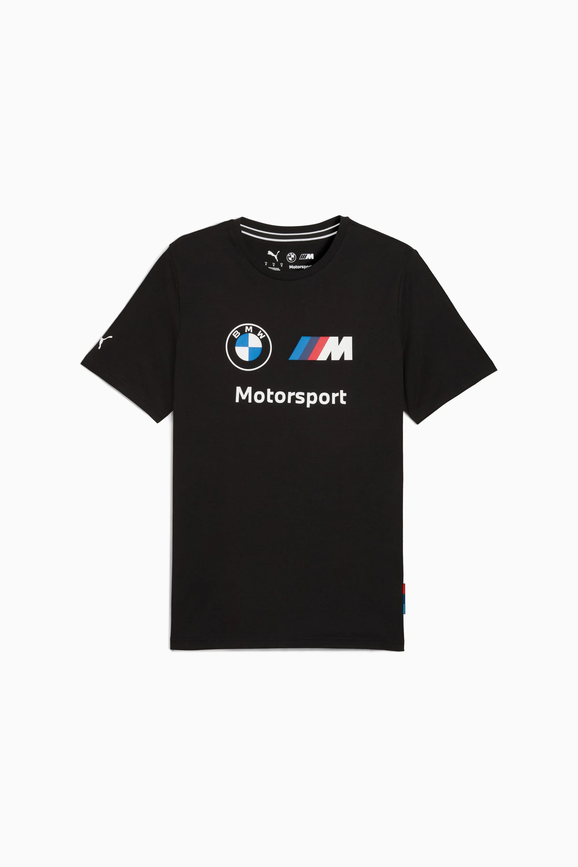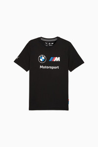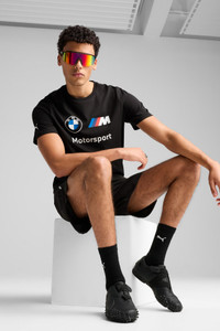 PRODUCT STORY Rev up your wardrobe with this dynamic tee, featuring a bold BMW M Motorsport graphic on the chest and a sleek PUMA Cat logo on the sleeve. Designed for a regular fit, it's perfect for those who live life in the fast lane. FEATURES & BENEFITS - Made with at least 20% recycled cotton DETAILS - Style: 632358_01 - Color: PUMA Black - Regular fit - Main material: Single jersey - Regular length - Crew neck - Short sleeves - BMW M Motorsport and PUMA branding MATERIAL INFORMATION - Shell: 100% cotton - Rib: 80% cotton, 20% polyester