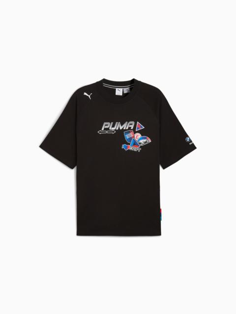 PRODUCT STORY PUMA x BMW M Motorsport is back with a collection inspired by the latest evolution of the BMW M4 GT4 EVO. Featuring graphics inspired by the car's advanced design and updated livery, this collection celebrates the speed, precision, and innovation that define this iconic vehicle. FEATURES & BENEFITS - Made with at least 20% recycled cotton. DETAILS - Style: 632974_02 - Color: PUMA White - Fit: Relaxed - Single jersey - Neck: Crew neck - Short sleeves - Length: Regular - Rubber print design detail MATERIAL INFORMATION - Shell: 100% cotton - Rib: 71% cotton, 29% polyester