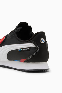 PRODUCT STORY The BMW M Motorsport Roma Stradale is the motorsport interpretation of this classic PUMA shoe. This sport-turned-street style features an all-over print and a synthetic upper for a clean look and feel. FEATURES & BENEFITS - The upper of the shoes is made with at least 20% recycled materials DETAILS - Style: 308617_01 - Color: PUMA Black-PUMA White - Regular width - Synthetic upper - Lace closure - Mesh tongue - BMW M Motorsport branding details - PUMA branding details MATERIAL INFORMATION - Sockliner: 100% Textile - Outsole: 100% Rubber - Upper: 97.66% Synthetic, 2.34% Textile - Lining: 100% Textile