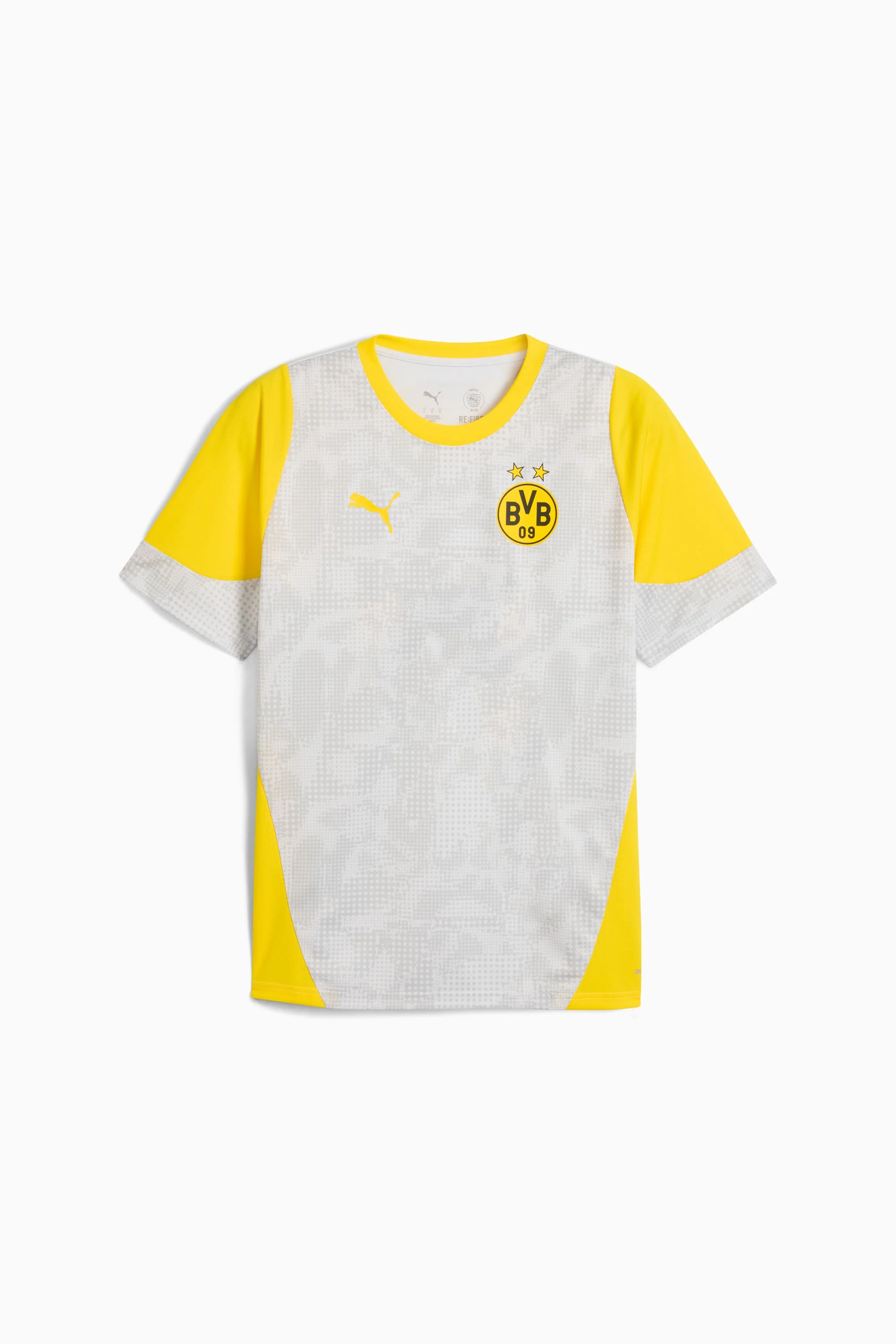 PRODUCT STORY Designed for top performance, the official training collection is crafted to meet the demands of the 25/26 season. Worn by the pros, it features advanced materials and a precision fit to elevate every training session. Built for comfort, mobility, and team pride, this collection helps players train their best every single day. FEATURES & BENEFITS - dryCELL: Highly functional materials draw sweat away from your skin and help keep you dry and comfortable during exercise - As part of the RE:FIBRE program, this garment is made of at least 95% recycled material from textile waste and other used materials DETAILS - Style: 781665_18 - Color: Silver Mist-Faster Yellow - Worn by the players during the 25/26 season - Fit: Slim - Main material: Double face jacquard - Short sleeves - Neck: Crew neck - Length: Regular - Club and PUMA branding details MATERIAL INFORMATION - Shell: 100% polyester