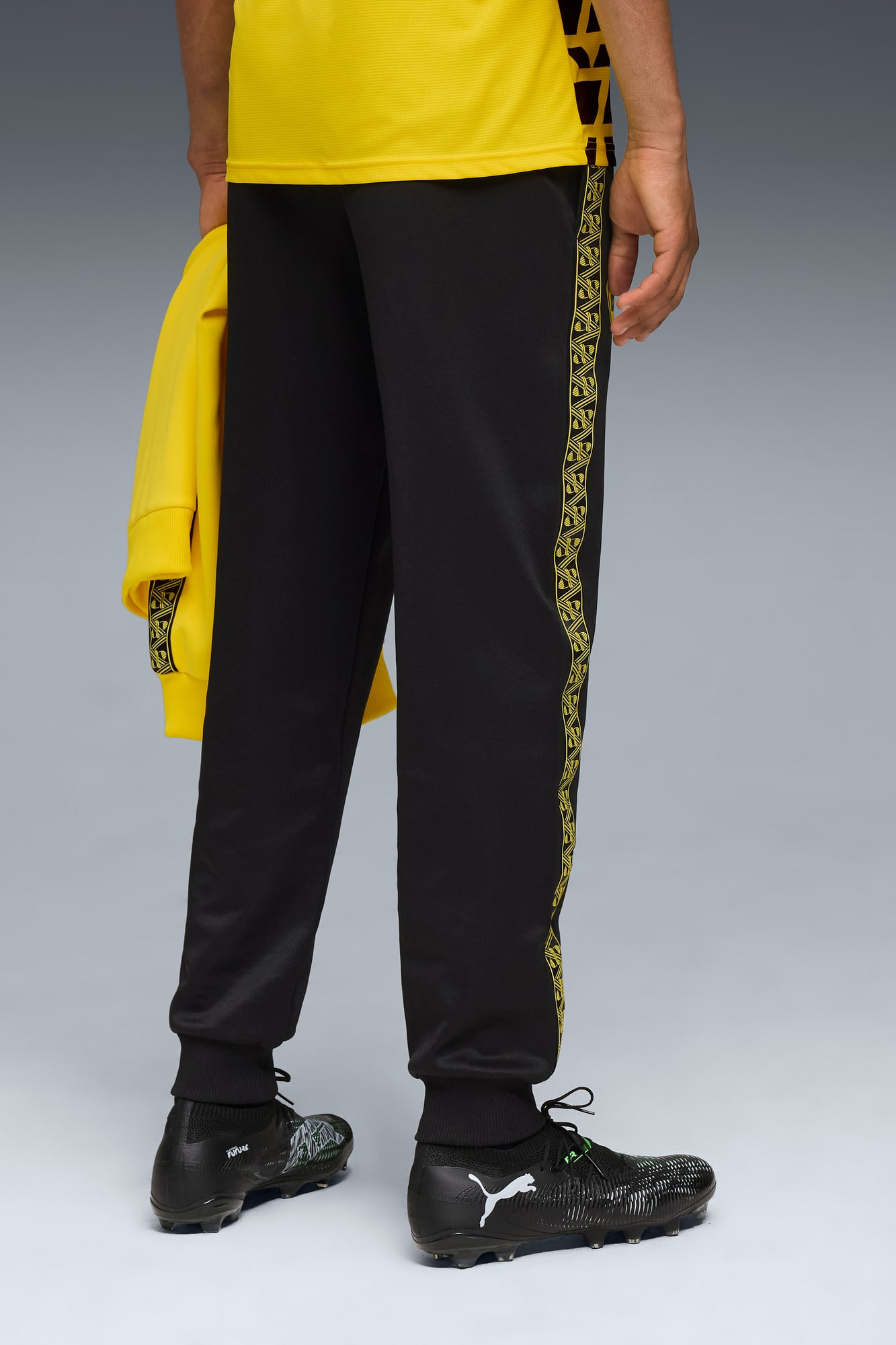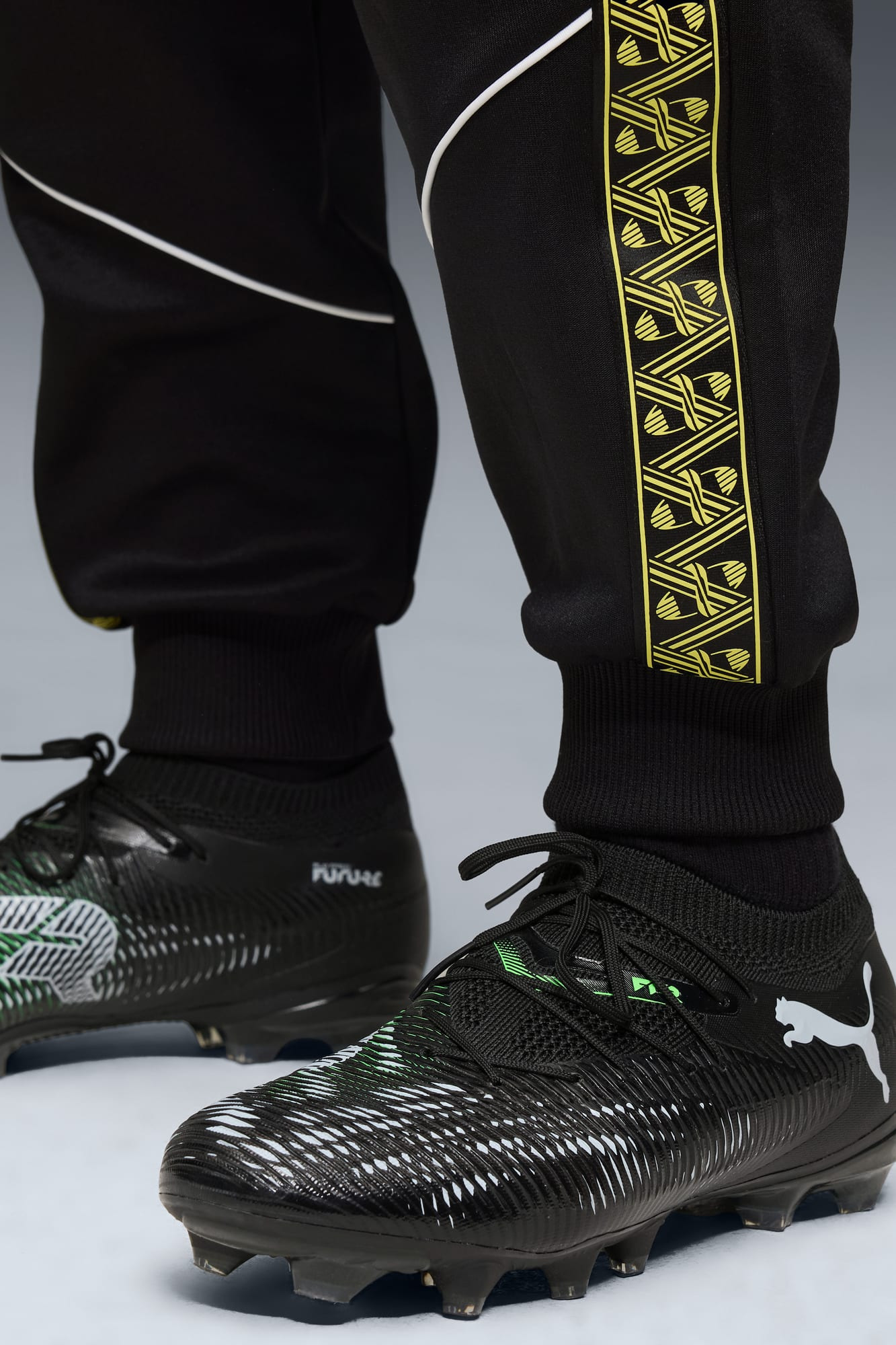 PRODUCT STORY The KING Anthem Collection blends retro vibes with a modern twist, worn by players during their walkouts before every game. Featuring bold, vintage-inspired designs, this apparel honors your club's legacy while showcasing your pride. Whether on the field or off, this collection delivers timeless style and contemporary comfort, making it a true symbol of loyalty and tradition. FEATURES & BENEFITS - dryCELL: Highly functional materials draw sweat away from your skin and help keep you dry and comfortable during exercise - Made with at least 50% recycled materials. DETAILS - Style: 527082_05 - Color: PUMA Black-Faster Yellow - Fit: Regular - Main material: Spacer - Worn by the players during the walk out moment - Length: Regular - Rise: Medium - Pockets: Side Pocket - Club and PUMA branding details MATERIAL INFORMATION - Trimming: 100% polyester - Shell: 63% polyester, 37% cotton - Pocket Bag: 100% polyester - Rib: 93% polyester, 7% elastane