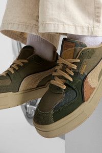 PRODUCT STORY Ever since the original PUMA California was released in the 1980s, the style made its mark on the streets. As new addition to the California family, the CA Pro is picking up on that heritage. Details like the toe perforations directly draw back to the original style, while the general design language is inspired by PUMA's classic range, including basketball. This rendition is outfitted with camo-inspired colorways for additional vibes. DETAILS - Style: 402095_01 - Color: Olive Drab-Myrtle-Sand Dune - Synthetic leather upper - Low boot - Lace closure - Regular fit - PUMA branding details