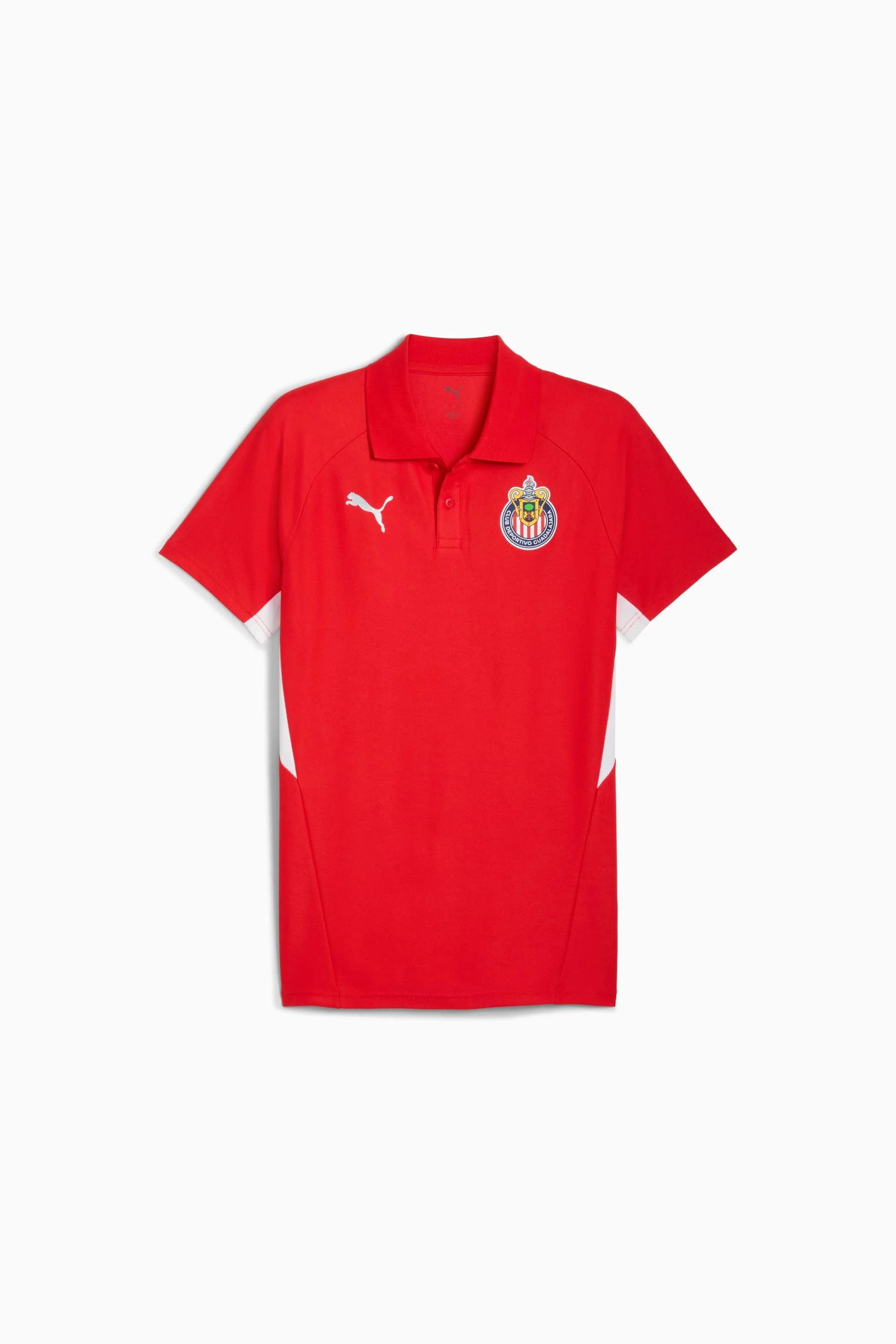 PRODUCT STORY The club's EVOSTRIPE collection blends true aesthetics with performance-ready designs. With streamlined cuts and lightweight materials, this collection lets you represent your colours with effortless confidence, whether training or on the move. FEATURES & BENEFITS - Made with at least 30% recycled materials. DETAILS - Style: 782112_04 - Color: PUMA Red-PUMA White - Fit: Slim - Main material: Pique - Neck: Collar - Short sleeves - Length: Regular - Club and PUMA branding details MATERIAL INFORMATION - Shell: 51% cotton, 49% polyester - Rib: 100% cotton