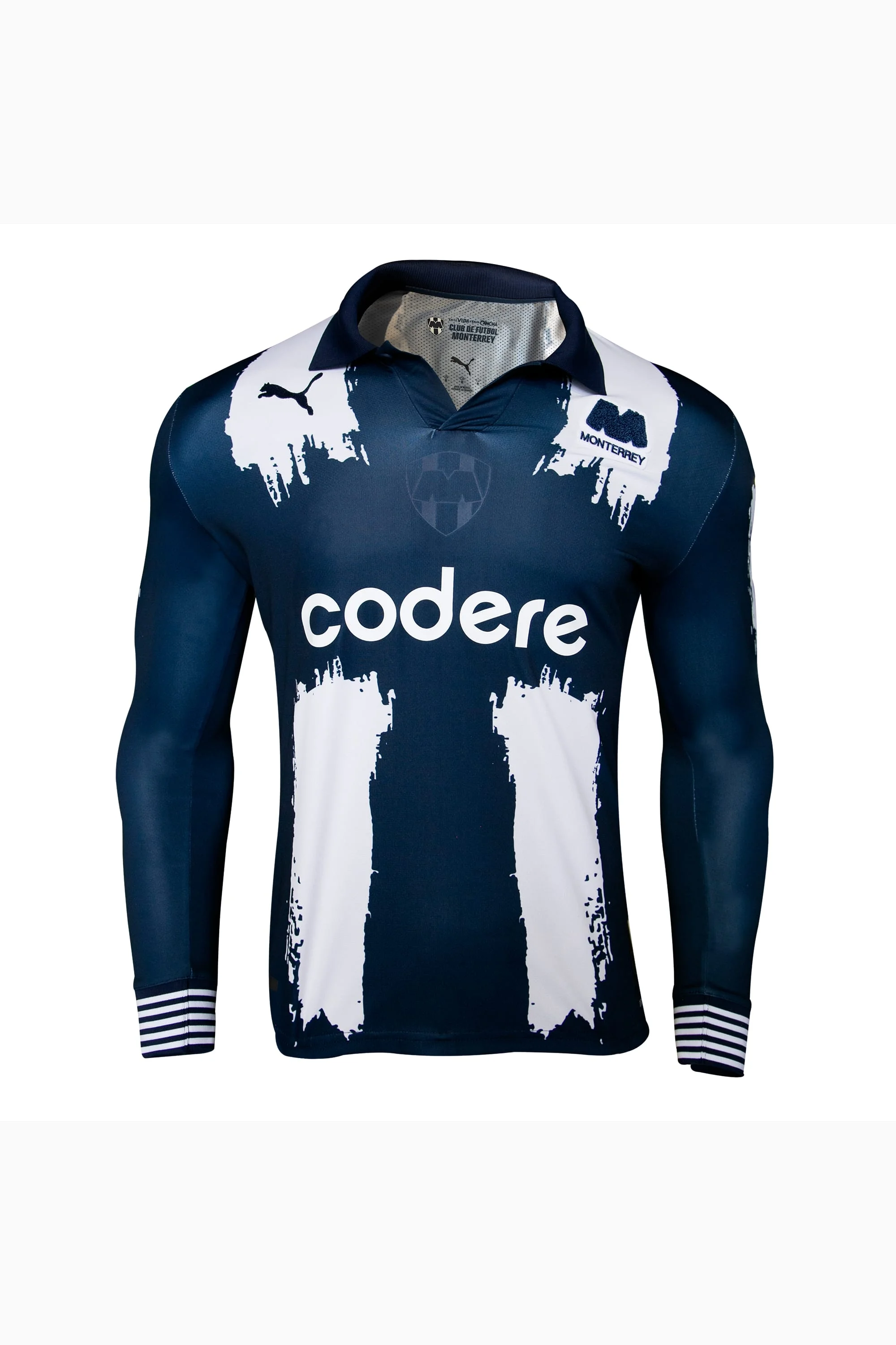 PRODUCT STORY Stay cool under pressure with dryCELL technology that wicks away moisture for top performance. Whether you're cheering from the stands or owning the field, this jersey's breathable mesh design keeps you feeling fresh. Represent Monterrey with pride and let PUMA's energy fuel your every move. Game day vibes, sorted! DETAILS - Style: 706878_01 - Color: PUMA Navy - Fit: Regular - Main Material: Mesh - Neck: Collar - Long sleeves MATERIAL INFORMATION - Back Body: 92% REPROCESSED POLYESTER, 8% elastane - Front Body: 100% REPROCESSED POLYESTER - Collar: 97% polyester, 3% elastane - Sleeve: 100% REPROCESSED POLYESTER - Sleeve Cuff: 97% polyester, 3% elastane