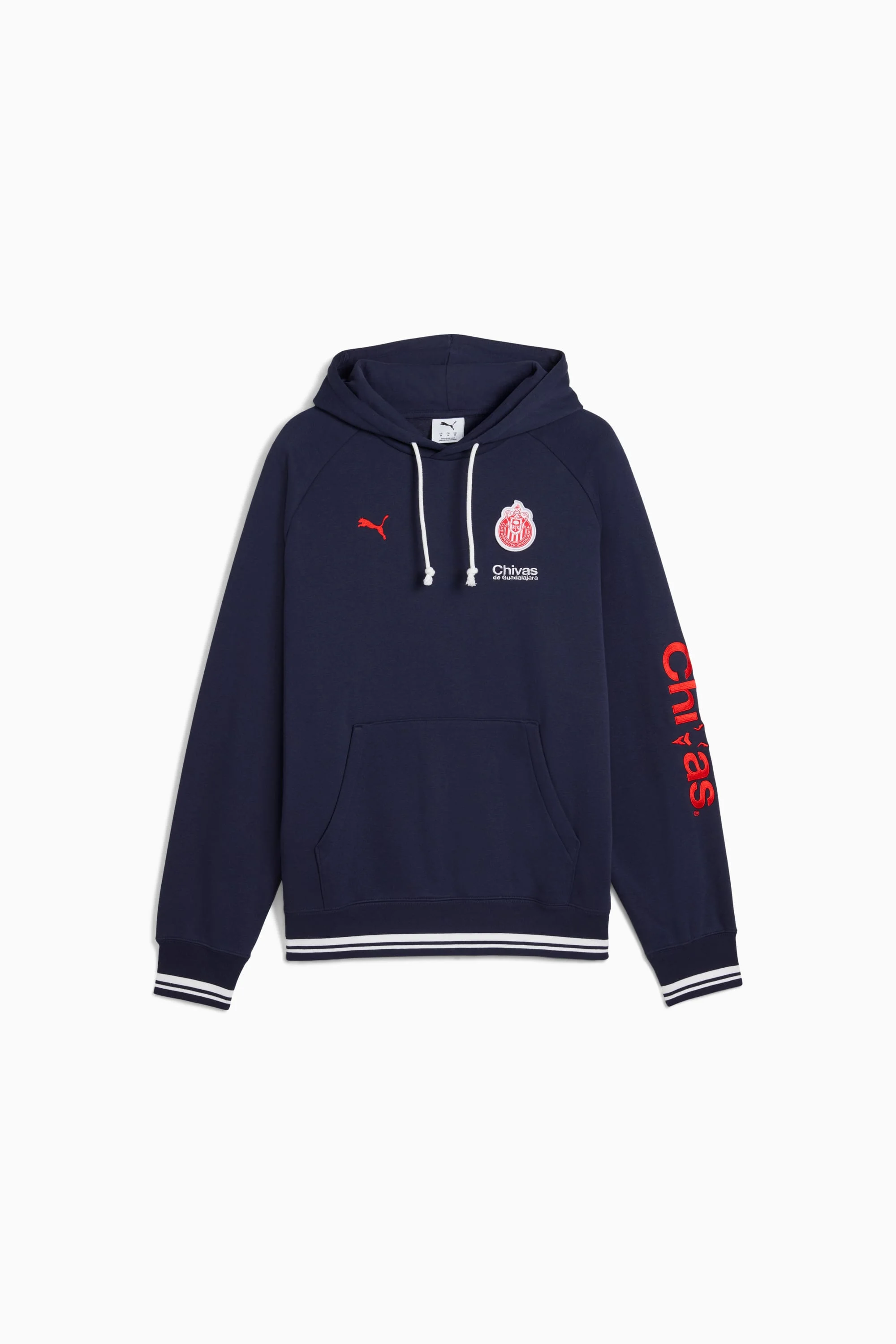 PRODUCT STORY Stay relaxed and ready for the game with this hoodie. Featuring a casual fit and kangaroo pocket piping for extra style, it's designed to keep you warm with WARMCELL technology. Ideal for game days or laid-back downtime, this is Chivas pride, brought to you by PUMA. DETAILS - Style: 786003_06 - Color: PUMA Navy - Fit: Relaxed - Main Material: Fleece - Neck: Crew - Long sleeves MATERIAL INFORMATION - Hood Lining: 100% cotton - Shell: 66% cotton, 34% polyester - Rib: 95% cotton, 5% elastane