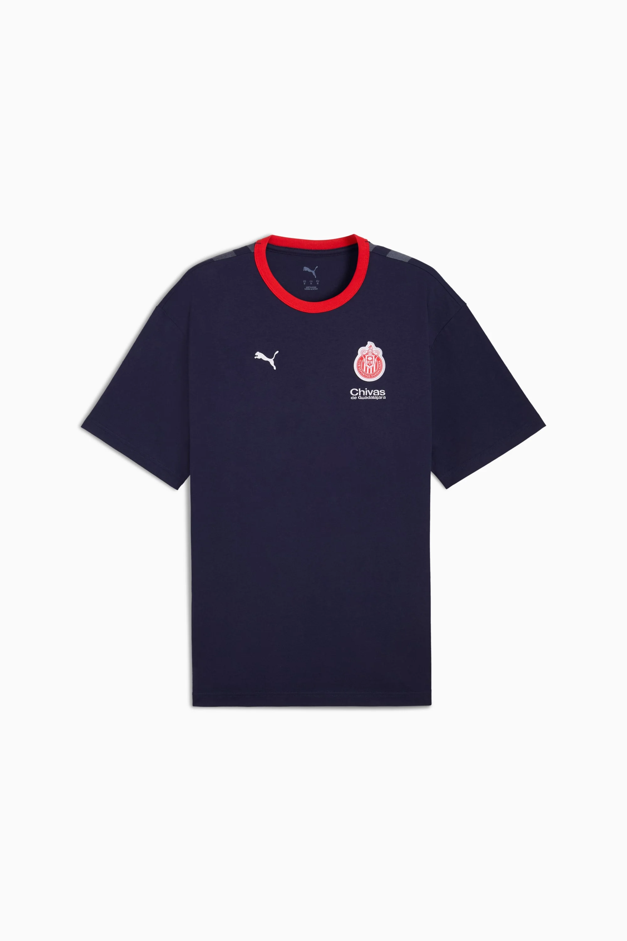 PRODUCT STORY Show your love for the game in a relaxed, casual style. Made from soft jersey fabric, this relaxed-fit tee is ideal for laid-back days or supporting your team. Every detail is crafted for comfort and ease, so you can represent your squad with effortless flair. Game on! DETAILS - Style: 786007_06 - Color: PUMA Navy - Fit: Relaxed - Main Material: Single jersey - Neck: Crew - Short sleeves MATERIAL INFORMATION - Shell: 100% cotton - Rib: 71% cotton, 29% polyester