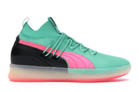 The Puma Clyde Court Disrupt South Beach is a stylish and comfortable basketball shoe that is perfect for both on and off the court. The shoe features a vibrant colorway that is inspired by the iconic South Beach area of Miami, with a mix of teal, pink, and black accents. The upper is made from a breathable knit material that provides a snug and supportive fit, while the midsole is made from Puma's proprietary NRGY cushioning technology, which offers excellent shock absorption and energy return. One of the standout features of the Puma Clyde Court Disrupt South Beach is its unique lacing system, which is designed to provide a secure and customizable fit. The shoe also features a rubber outsole that provides excellent traction on both indoor and outdoor surfaces. The Puma Clyde Court Disrupt South Beach was released on December 8th, 2018, and has a retail price of $120. Overall, this shoe is a great choice for basketball players who want a stylish and comfortable shoe that performs well on the court. Something we love about the Puma Clyde Court Disrupt South Beach is its eye-catching colorway, which is sure to turn heads both on and off the court. - Style 191715-01 - Colorway Biscay Green/Pink-Puma Black - Retail Price 120 - Release Date 2018-12-08 - Featured false