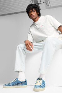 PRODUCT STORY More than just a sneaker – the Clyde is a true icon from the PUMA archive. Just like its namesake, Walt "Clyde" Frazier, the Clyde embodies fashion, culture, and basketball heritage with confidence and flair. This version features a washed denim upper with a "wear and tear" look. FEATURES & BENEFITS - Vegan certified product DETAILS - Style: 399655_01 - Color: Frosted Ivory-Faded Denim - Textile upper - Textile details including heel overlay, eyestay and PUMA Formstrip - Synthetic collar - Synthetic sockliner - Rubber midsole - Rubber outsole MATERIAL INFORMATION - Sockliner: 100% Synthetic - Outsole: 100% Rubber - Upper: 100% Textile - Lining: 56.63% Textile, 43.37% Synthetic