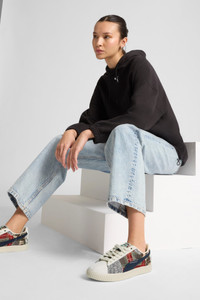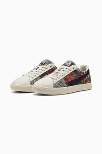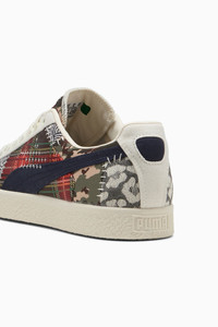 PRODUCT STORY More than just a sneaker – the Clyde is a true icon from the PUMA archive. Just like its namesake, Walt "Clyde" Frazier, the Clyde embodies fashion, culture, and basketball heritage with confidence and flair. This version brings a fresh look to the classic style with a patchwork look and decorative embroidery on the sides. FEATURES & BENEFITS - Vegan certified product DETAILS - Style: 401040_01 - Color: Brandy-Light Sand - Regular width - Textile upper - Lace closure (with additional set of laces in box) - Textile lining - Ortholite® insole - Rubber outsole - PUMA branding details MATERIAL INFORMATION - Sockliner: 100% Synthetic - Outsole: 100% Rubber - Upper: 100% Textile - Lining: 56.63% Textile, 43.37% Synthetic