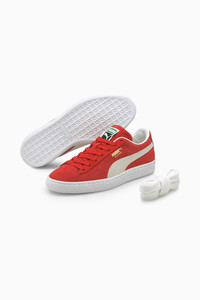 PRODUCT STORY Step up your sneaker game with the PUMA Suede Classic XXI. These iconic sneakers feature a timeless design that never goes out of style. Made with premium suede and a comfortable rubber sole, these sneakers are perfect for everyday wear. The PUMA Suede Classic XXI offers a perfect blend of style and comfort, making them a must-have addition to your shoe collection. Whether you're hitting the streets or heading to the gym, these sneakers will keep you looking and feeling great all day long. Elevate your look with the PUMA Suede Classic XXI and step out in style. FEATURES & BENEFITS - BETTER MATERIALS: The leather sourced in this product comes from environmentally responsible leather manufacturing, and is audited and certified via the Leather Working Group protocol DETAILS - Style: 374915_02 - Color: High Risk Red-Puma White - Classic Suede lo-top silhouette - Full suede upper - Synthetic leather lining - Full lace closure - Additional laces included - Comfort sockliner for instant step-in cushioning - Rubber midsole and outsole for durable grip and traction - Gold metallic foil PUMA Suede callout at lateral side - PUMA Formstrip overlay at sides with perforated detailing - PUMA Archive woven label at tongue MATERIAL INFORMATION - Sockliner: 100% Textile - Outsole: 100% Rubber - Upper: 97.19% Leather - cow, 2.81% Textile - Lining: 100% Textile