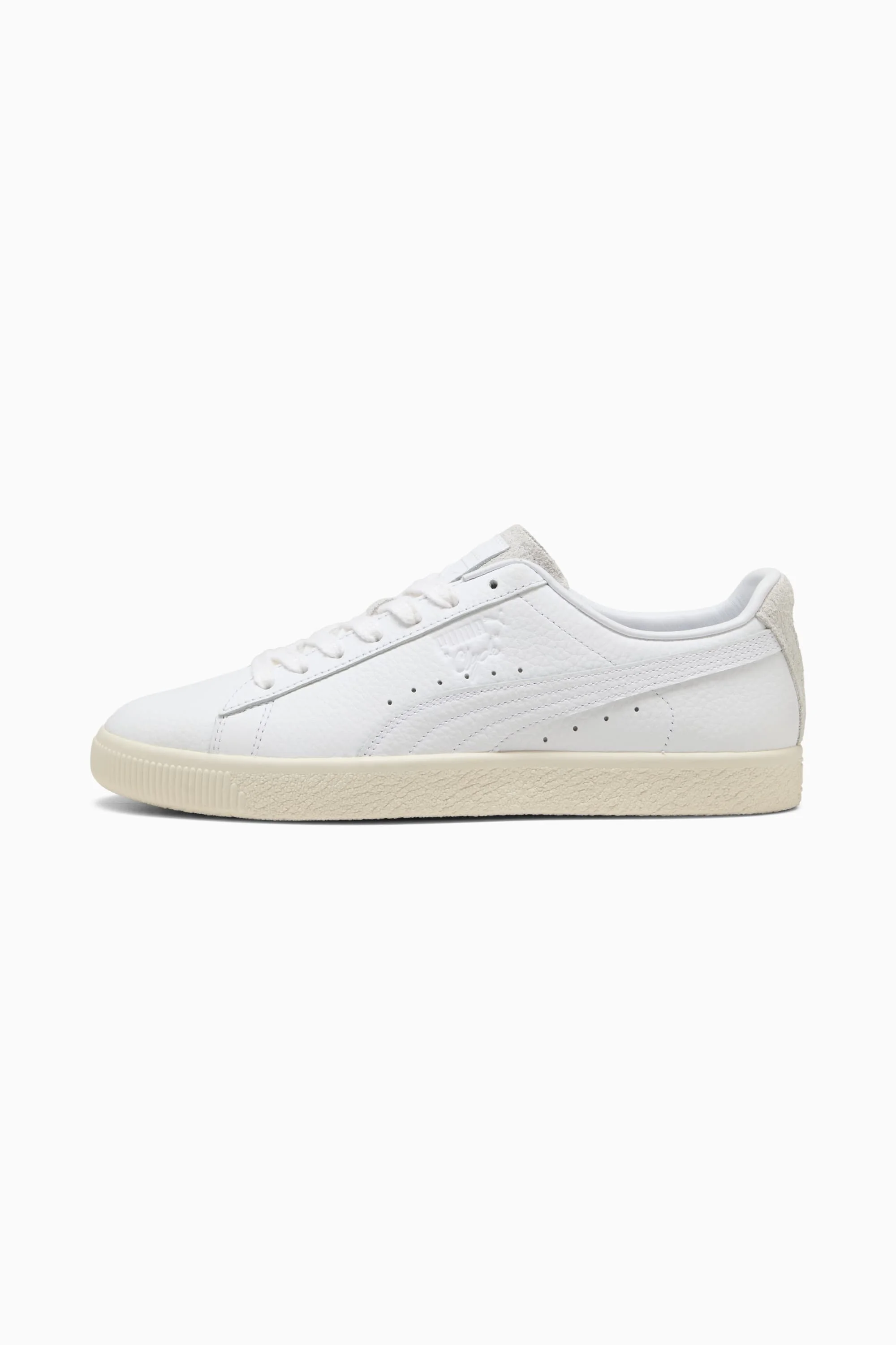 PRODUCT STORY More than just a sneaker – the Clyde is a true icon from the PUMA archive. Just like its namesake, Walt "Clyde" Frazier, the Clyde embodies fashion, culture, and basketball heritage with confidence and flair. This year continues the over 50-year history of this iconic silhouette. The Clyde Premium stays true to the classic design, featuring a premium leather upper with a nubuck Formstrip and a hairy suede heel and tongue. FEATURES & BENEFITS - PUMA's leather products support responsible manufacturing via the Leather Working Group.www.leatherworkinggroup.com DETAILS - Style: 394834_01 - Color: PUMA White-Frosted Ivory - Premium leather upper - Hairy suede tonque with PUMA debossed label and heel - Nubuck Formstrip - Gold foiled and debossed PUMA Clyde branding on the quarter - Leather lining and sockliner - Rubber midsole - Rubber outsole MATERIAL INFORMATION - Sockliner: 100% Synthetic - Outsole: 100% Rubber - Upper: 100% Leather - cow - Lining: 56.63% Textile, 43.37% Leather - cow
