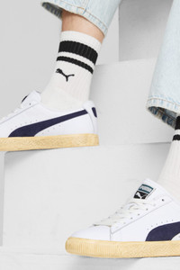 PRODUCT STORY More than just a sneaker – the Clyde is a true icon from the PUMA archive. Just like its namesake, Walt “Clyde” Frazier, the Clyde embodies fashion, culture, and basketball heritage with confidence and flair. This year marks the 50th anniversary of this iconic silhouette and has a leather upper with a leather Formstrip and an aged effect on the midsole. FEATURES & BENEFITS - PUMA’s leather products support responsible manufacturing via the Leather Working Group. www.leatherworkinggroup.com DETAILS - Style: 394687_01 - Color: PUMA White-PUMA Navy - Leather upper - Leather Formstrip - Debossed and printed PUMA Clyde branding on quarter - Woven label on tongue with PUMA branding - Rubber midsole - Rubber outsole MATERIAL INFORMATION - Sockliner: 100% Textile - Outsole: 100% Rubber - Upper: 100% Leather - cow - Lining: 100% Textile