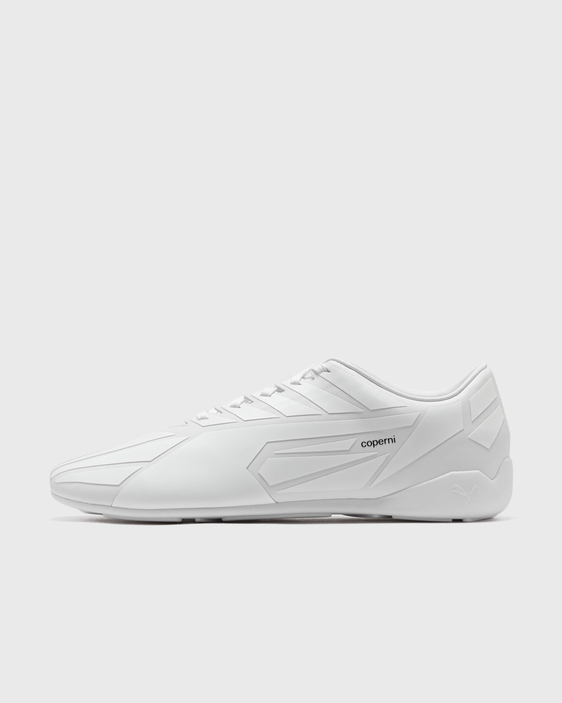 The iconic PUMA Speedcat is reinterpreted by Coperni. Taking cues from soccer and the design language of the sport, the silhouette features geometric 5D printed panels, a synthetic leather upper and a molded insole with a mesh overlay. - Synthetic leather with 5D print design - Lining: Leather - Insole: Molded insole with mesh overlay - Midsole: Rubber - Outsole: Rubber Article Number: 398650-WHT Gender: Men, Women Color: WHITE Material: 100% Synthetic/Textile