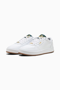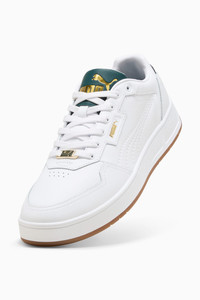 PRODUCT STORY Embrace effortless court vibes and make them a part of your style DNA. With a design inspired by retro tennis, the new Court Classic Lux blends versatility and fashion into an iconic staple piece with premium details like leather overlays, lace jewel, and foiled logos—inspired by the court, made for the street. The SoftFoam+ sockliner provides superior cushioning and optimal comfort for every step of your day. FEATURES & BENEFITS - SOFTFOAM+: Step-in comfort sockliner designed to provide soft cushioning thanks to its extra thick heel - PUMA's leather products support responsible manufacturing via the Leather Working Group.www.leatherworkinggroup.com DETAILS - Style: 395019_13 - Color: PUMA White-Green Terrain-PUMA Gold - Leather upper - Lace jewel - Foiled logos - Textile lining - Rubber outsole