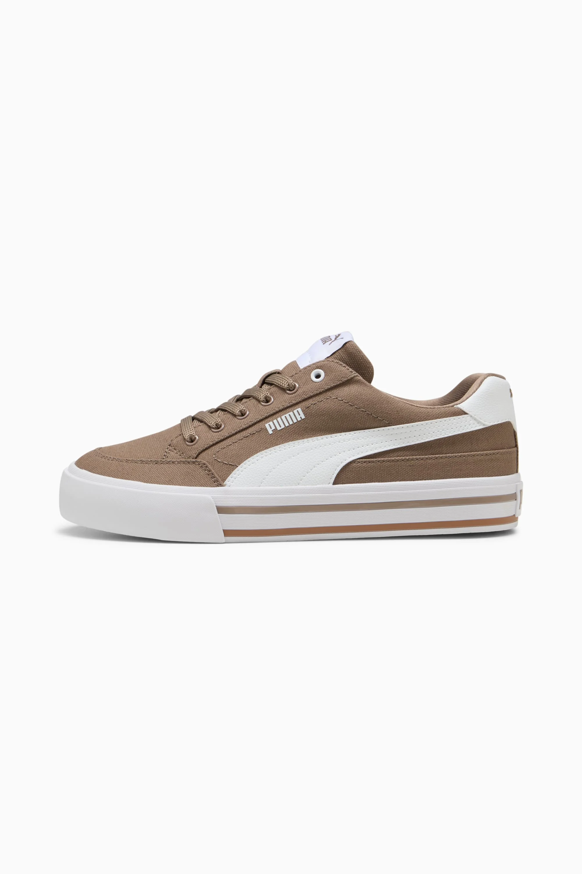 PRODUCT STORY Born for the court but made to roam the streets, the Court Classic Vulc delivers an iconic style with the performance to match. Lean into its retro-inspired design and vulcanised construction as you stride through your day, cushioned by SoftFoam+ for relentless comfort with every step. FEATURES & BENEFITS - The upper of the shoes is made with at least 30% recycled materials. DETAILS - Style: 396353_22 - Color: Totally Taupe-PUMA White - Canvas upper - Vulcanised tooling - The SoftFoam+ sock-liner provides superior cushioning and optimal comfort for all-day wear - Lace closure - PUMA Formstrip on lateral side MATERIAL INFORMATION - Sockliner: 100% Textile - Outsole: 100% Rubber - Upper: 86.10% Textile, 13.90% Synthetic - Lining: 100% Textile