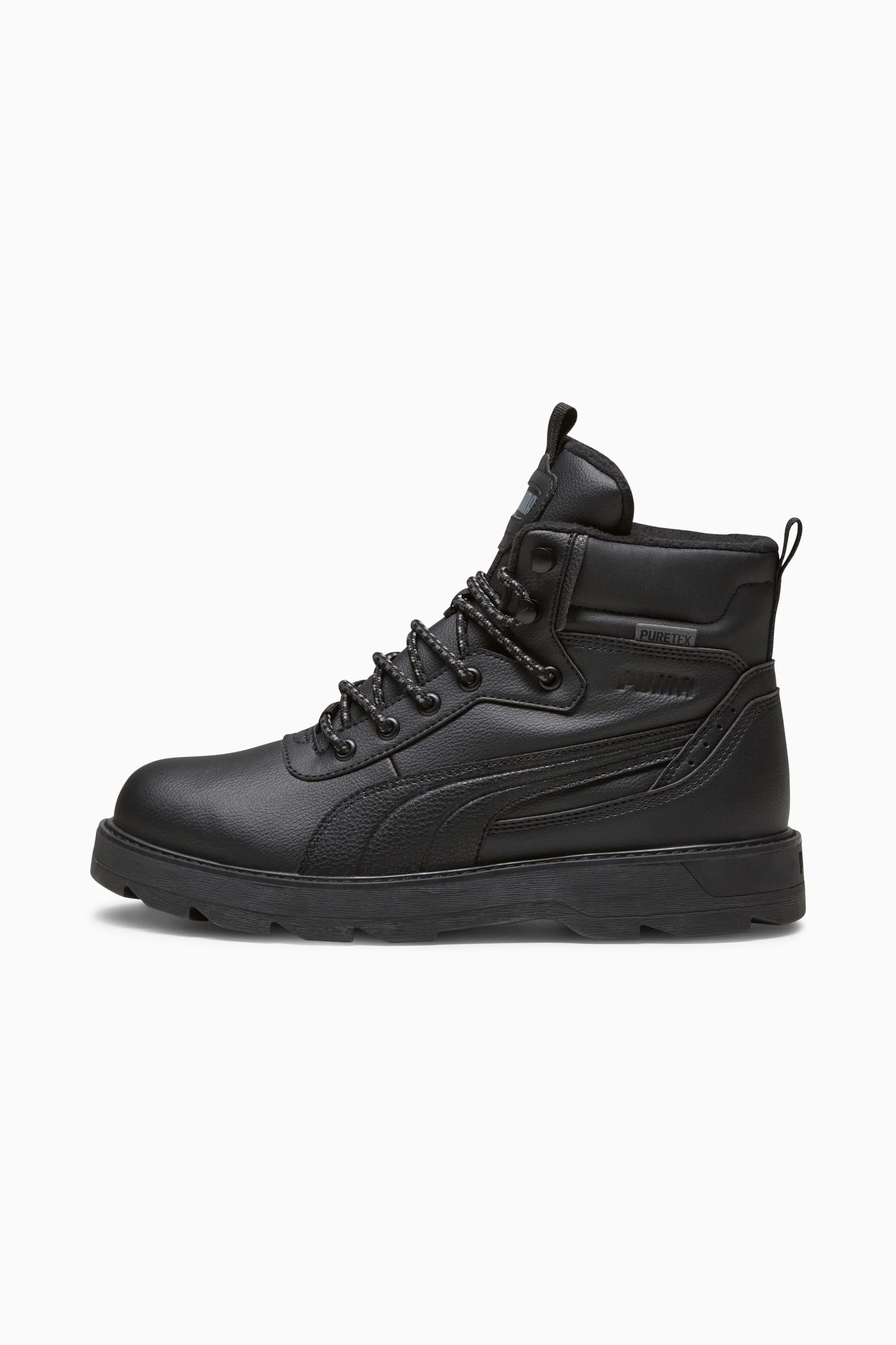 PRODUCT STORY Tackle the cold with the right protetion and cushioning in the Desierto v3 boots. Built with a warm fur lining and sturdy rubber outsole, not only will your feet feel at ease in winter but the pared back styling make it a go-to for easy to pair with any outfit. We've also kitted this version with PureTex for some additional protection to help with those long days on your feet. FEATURES & BENEFITS - SOFTFOAM+: Step-in comfort sockliner designed to provide soft cushioning thanks to its extra thick heel - PUMAGRIP ATR: Trail-ready performance rubber compound designed for traction on ice, mud, and unstable surfaces DETAILS - Style: 393928_01 - Color: PUMA Black-PUMA Black - Synthetic upper - PUMAGRIP ATR outsole - PUMA Formstrip on lateral and medial sides - PUMA branding details - PureTex waterproofing MATERIAL INFORMATION - Sockliner: 100% Textile - Outsole: 100% Rubber - Upper: 94.65% Synthetic, 5.35% Textile - Lining: 100% Textile