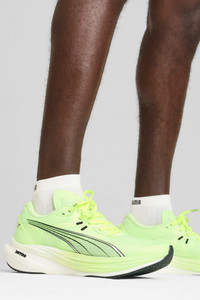 Experience unparalleled propulsion in your everyday training runs with the Deviate NITRO™ 3, featuring PWRPLATE technology and NITROFOAM™. This highly responsive trainer delivers a snappy ride, infusing speed into every stride. FEATURES & BENEFITS - The upper of the shoes is made with at least 20% recycled materials - NITROFOAM™: Advanced nitrogen-infused foam designed to provide superior responsiveness and cushioning in a lightweight package - PWRPLATE: Carbon fibre plate engineered to stabilise the midsole while maximising energy transfer DETAILS - Style: 309707_06 - Color: Fizzy Apple-PUMA Silver - Regular fit - Engineered mesh upper - Stack height: 39mm/29mm - Weight: 250g (size UK8) - Heel-to-toe drop: 10mm - Recommended for: neutral pronators MATERIAL INFORMATION - Midsole: 100% Synthetic - Sockliner: 100% Textile - Outsole: 100% Rubber - Upper: 73% Textile, 27% Synthetic - Lining: 100% Textile