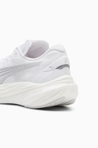 Experience unparalleled propulsion in your everyday training runs with the Deviate NITRO™ 3, featuring PWRPLATE technology and NITROFOAM™. This highly responsive trainer delivers a snappy ride, infusing speed into every stride. FEATURES & BENEFITS - The upper of the shoes is made with at least 20% recycled materials - NITROFOAM™: Advanced nitrogen-infused foam designed to provide superior responsiveness and cushioning in a lightweight package - PWRPLATE: Carbon fibre plate engineered to stabilise the midsole while maximising energy transfer DETAILS - Style: 309707_10 - Color: PUMA White-Feather Gray-PUMA Silver - Regular fit - Engineered mesh upper - Stack height: 39mm/29mm - Weight: 250g (size UK8) - Heel-to-toe drop: 10mm - Recommended for: neutral pronators MATERIAL INFORMATION - Midsole: 100% Synthetic - Sockliner: 100% Textile - Outsole: 100% Rubber - Upper: 73% Textile, 27% Synthetic - Lining: 100% Textile