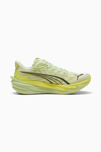 PRODUCT STORY Deviate 4 isn't just fast – its too fast. 15g lighter than its predecessor, this high-performance shoe is built for runners who refuse to slow down. Featuring enhanced NITROFOAM™ technology for even better energy return, a breathable engineered mesh upper, and a carbon composite PWRPLATE, Deviate 4 gives you the edge you need to push through tempo runs or crush race day. Go further. Go faster. FEATURES & BENEFITS - The upper of the shoes is made with at least 20% recycled materials. DETAILS - Style: 312123_04 - Color: Apple Spritz-Lux Lime - Width: Regular - Toe type: Rounded - Fastener: Laces - Heel type: Flat - Cushioning: Max - PWRPLATE provides propulsion - PUMAGRIP outsole offers multi-surface traction - Weight: 250g (size UK8), stack height: 38mm/30mm - Heel-to-toe drop: 8mm - Pronation: Neutral MATERIAL INFORMATION - Midsole: 100% Synthetic - Sockliner: 100% Textile - Outsole: 100% Rubber - Upper: 67% Textile, 33% Synthetic - Lining: 100% Textile